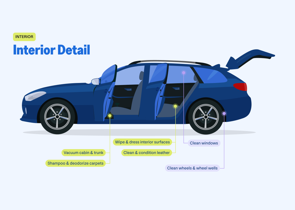 We appreciate you so much. You can make things easy-peasy by removing any valuables or personal items from your car, console, and trunk, though we are always happy to do this for you and put everything back where we found it. If you have a car seat, you have the option to remove it yourself prior to service, or we will clean around it.