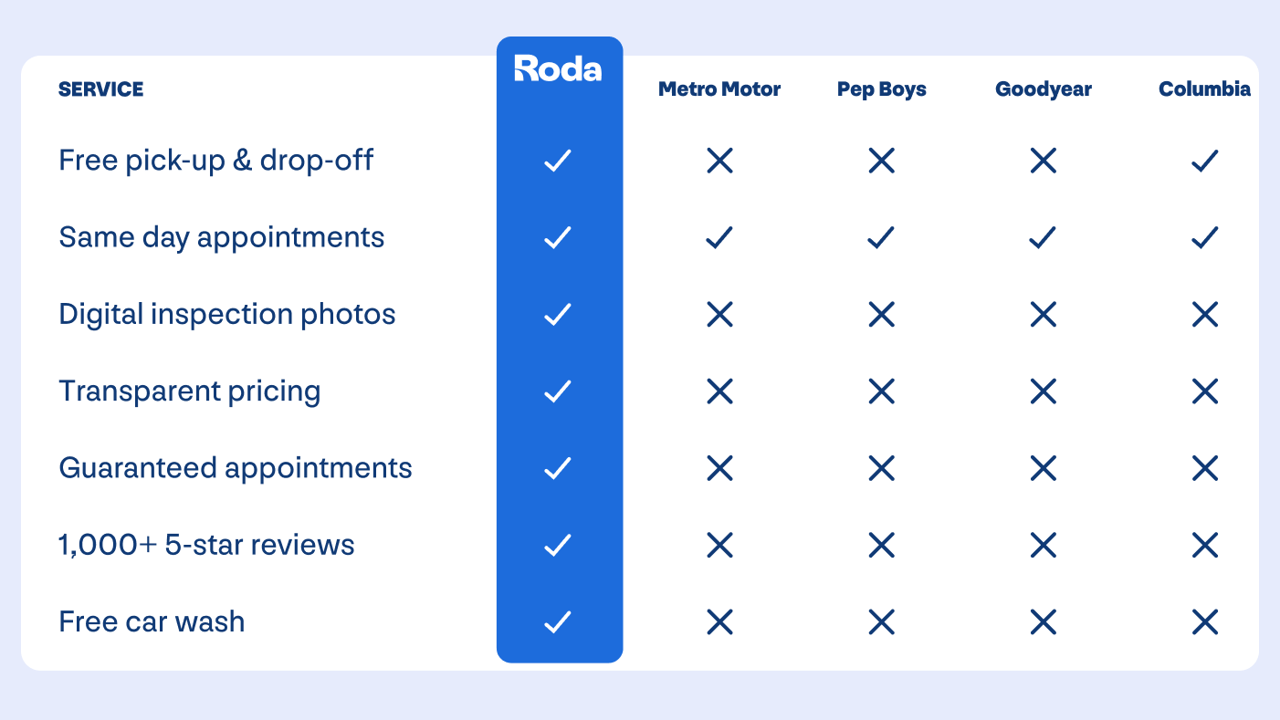 All repair work completed as part of the inspection process is backed by our Roda 12-month / 12,000-mile warranty, covering both parts and labor.