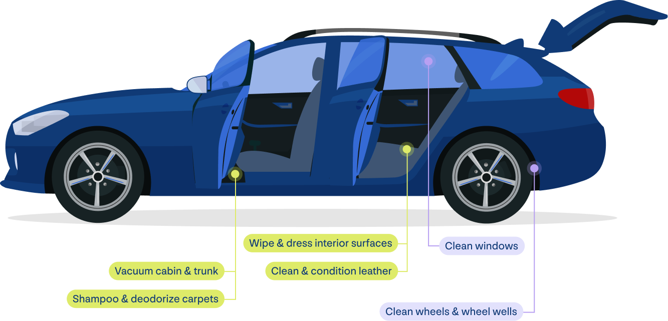 Our Interior Detail will leave your car’s interior feeling renewed, refreshed, and ready for the road again.We believe in hospitality and transparency — you’ll always know exactly what we’re doing and why it matters.